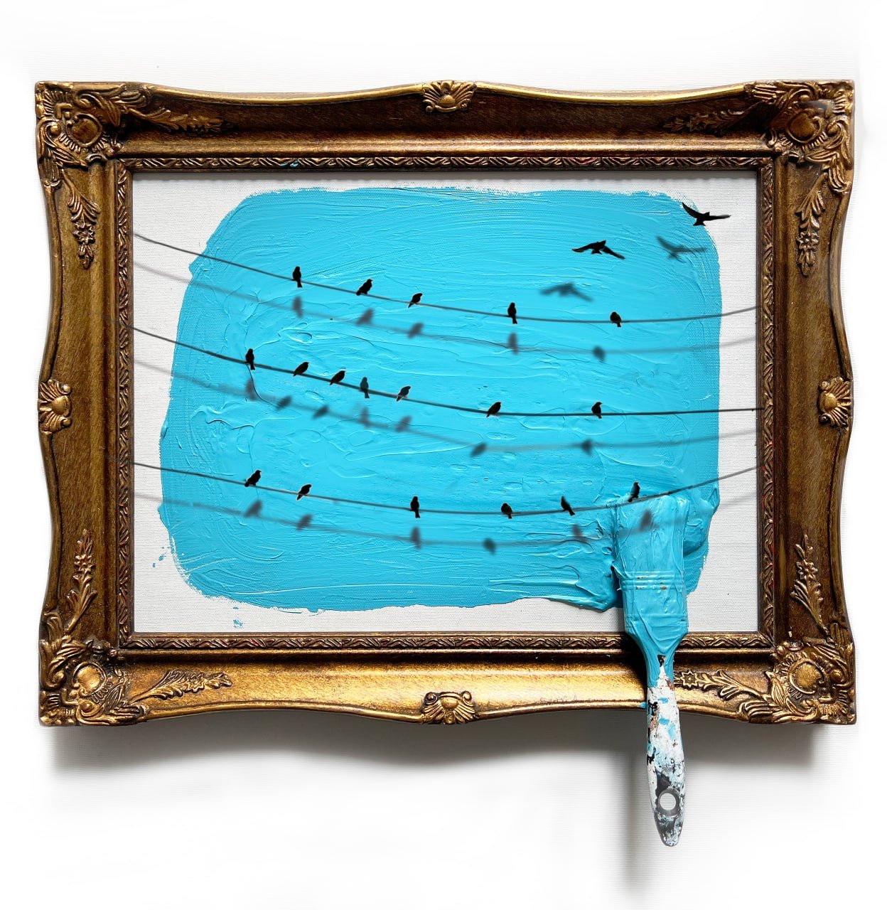 Mixed media on framed canvas and paint brush