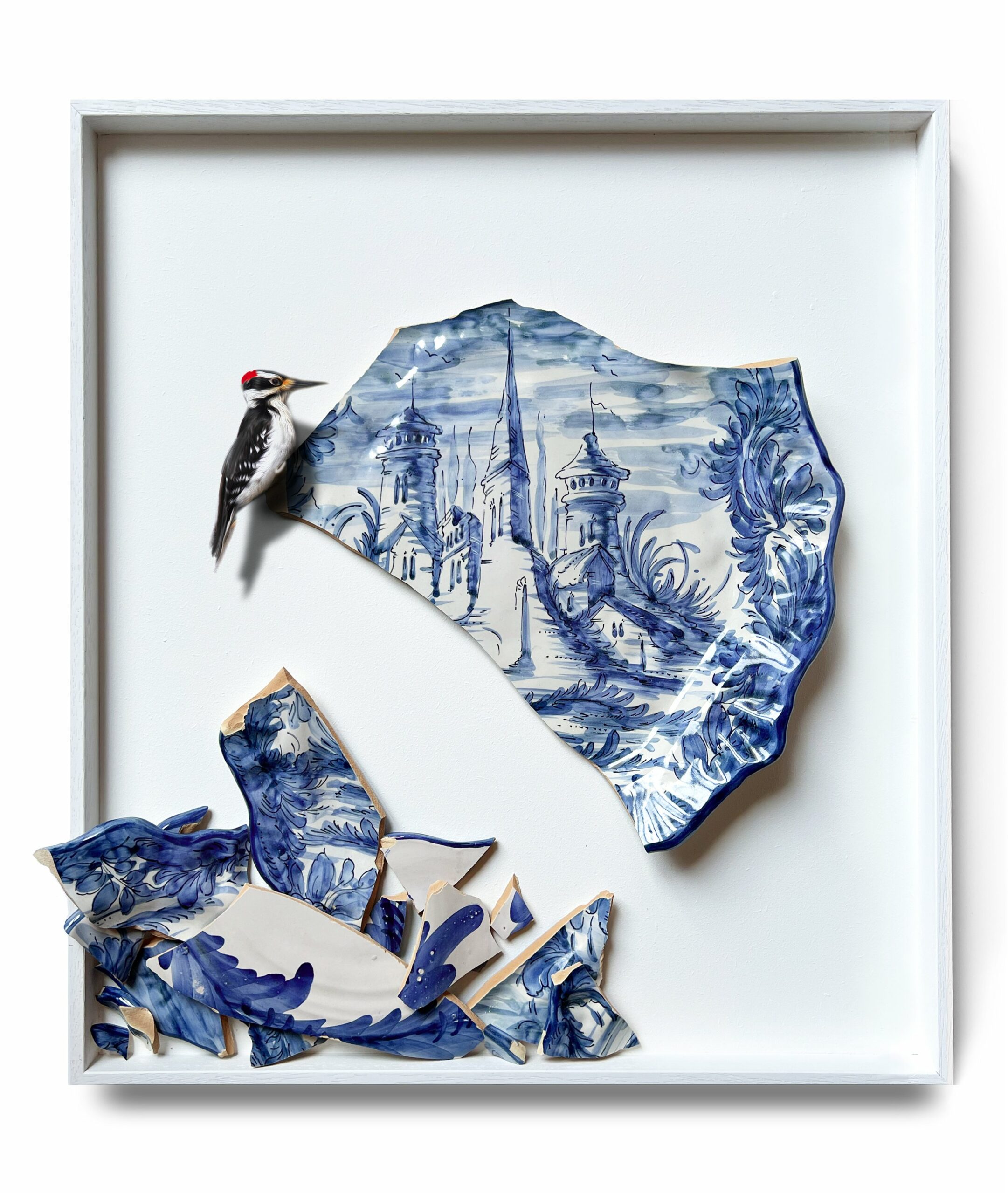 Mixed media on framed panel and porcelain plate