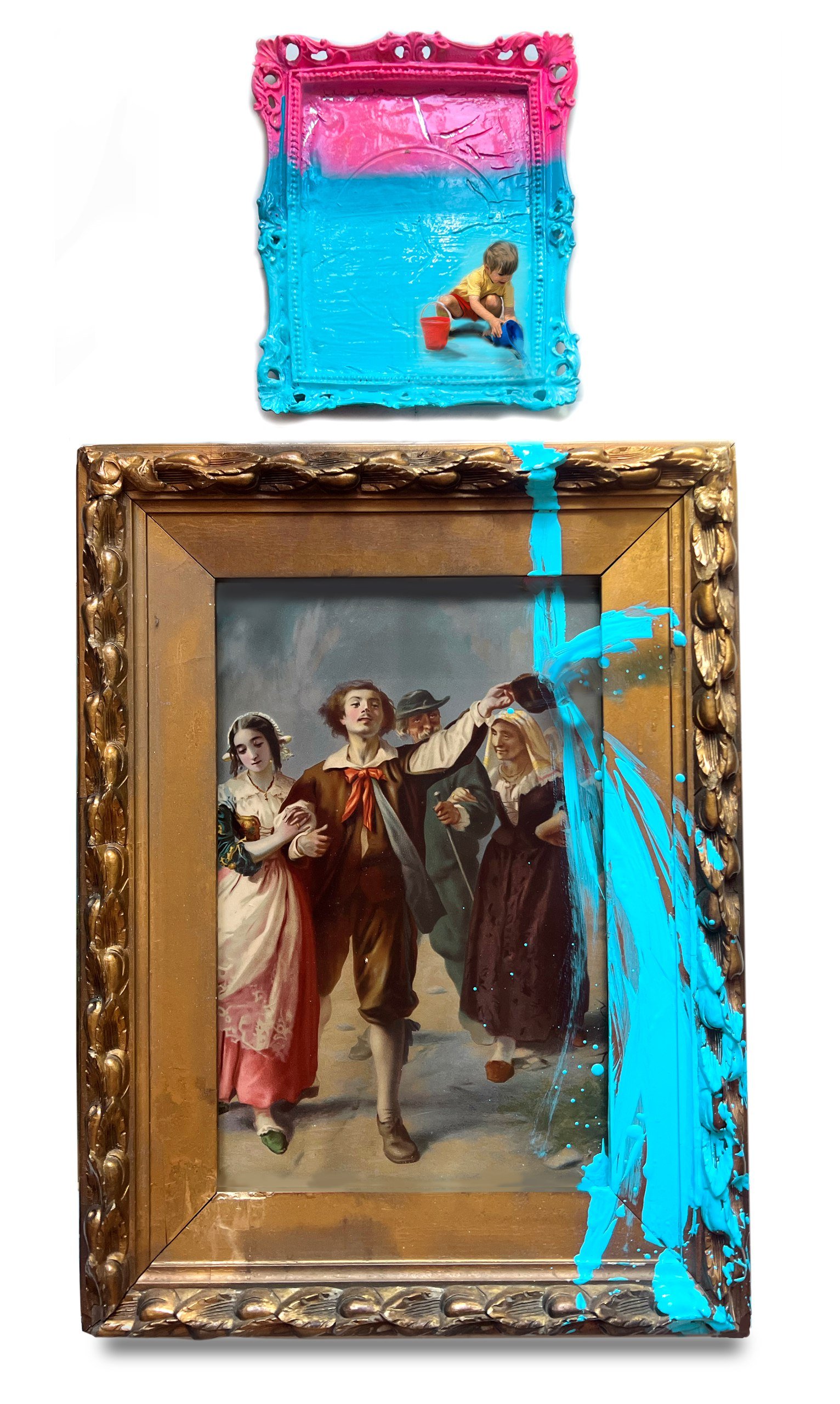 Mixed Media on Framed Canvas and Panel – Diptych