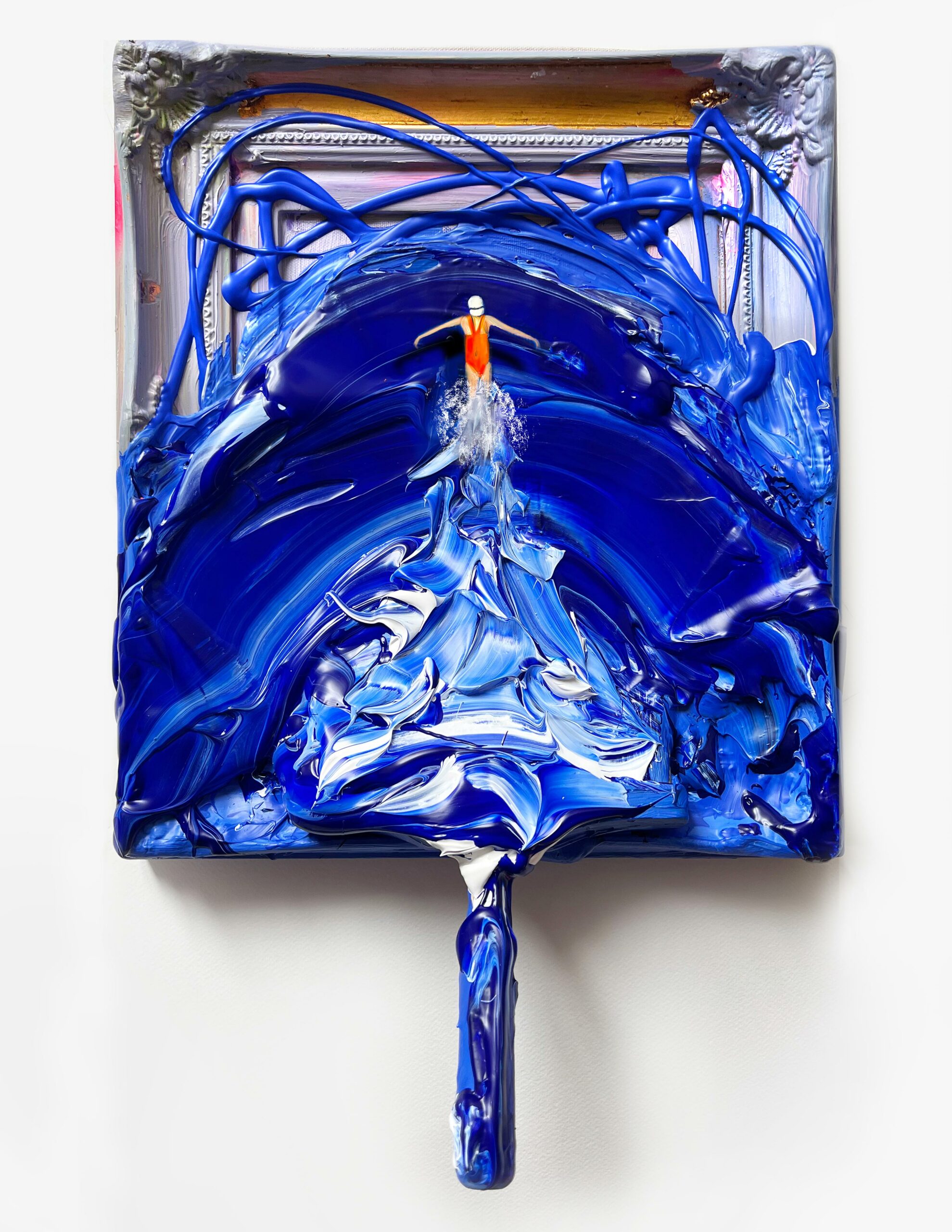 Mixed media on framed canvas and paint brush