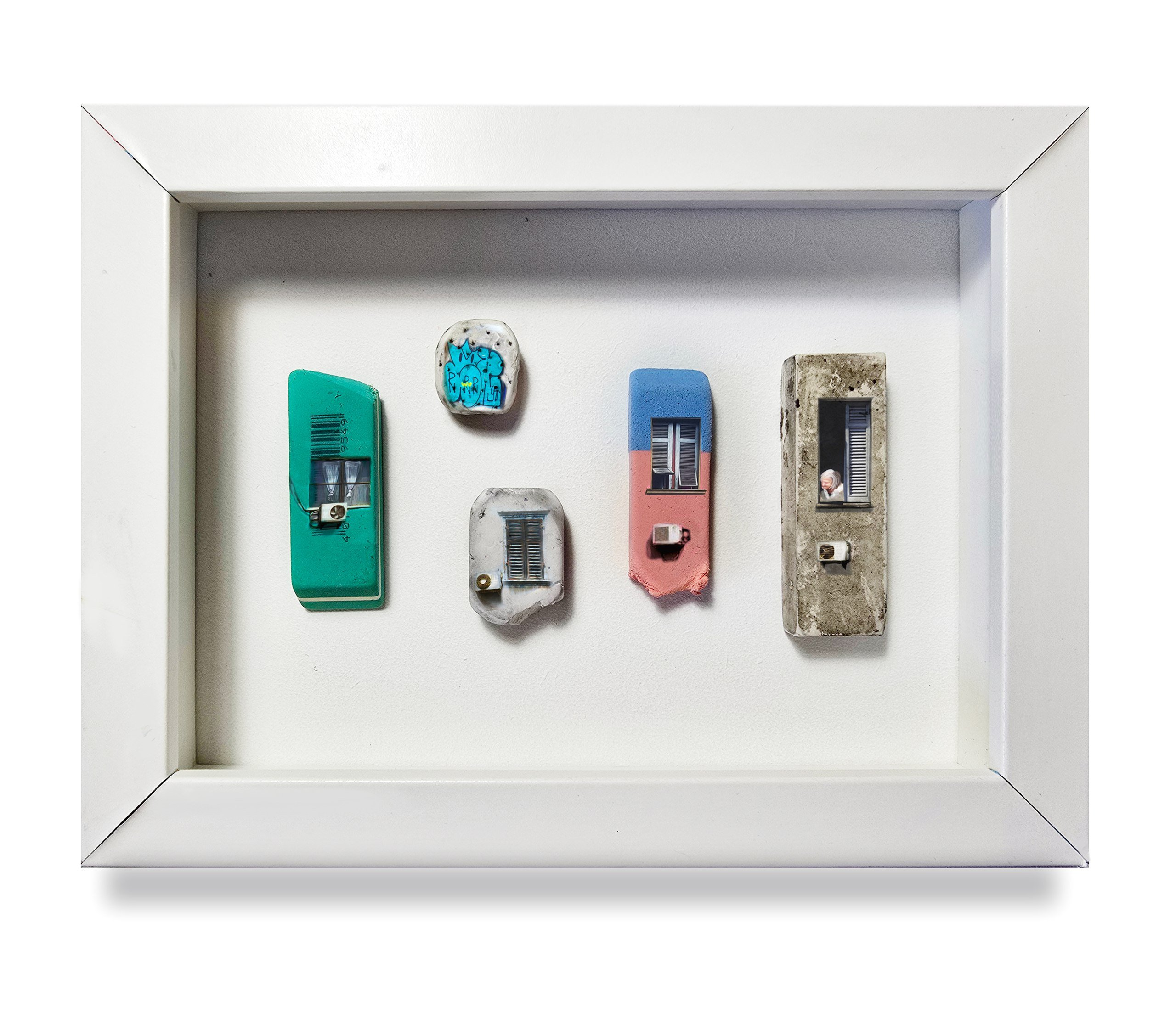 Mixed Media on Framed Erasers