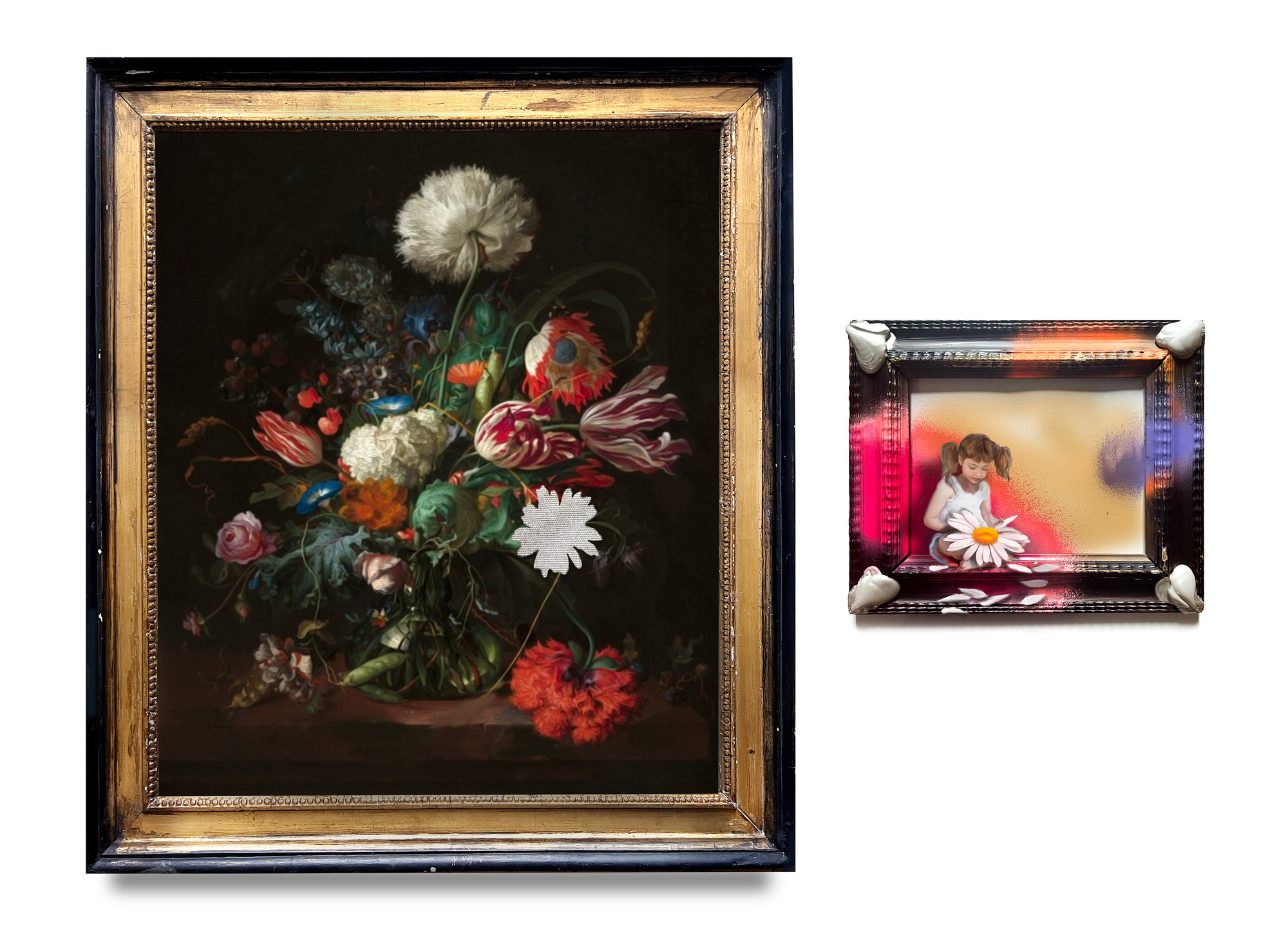Diptych, Mixed media on framed canvases