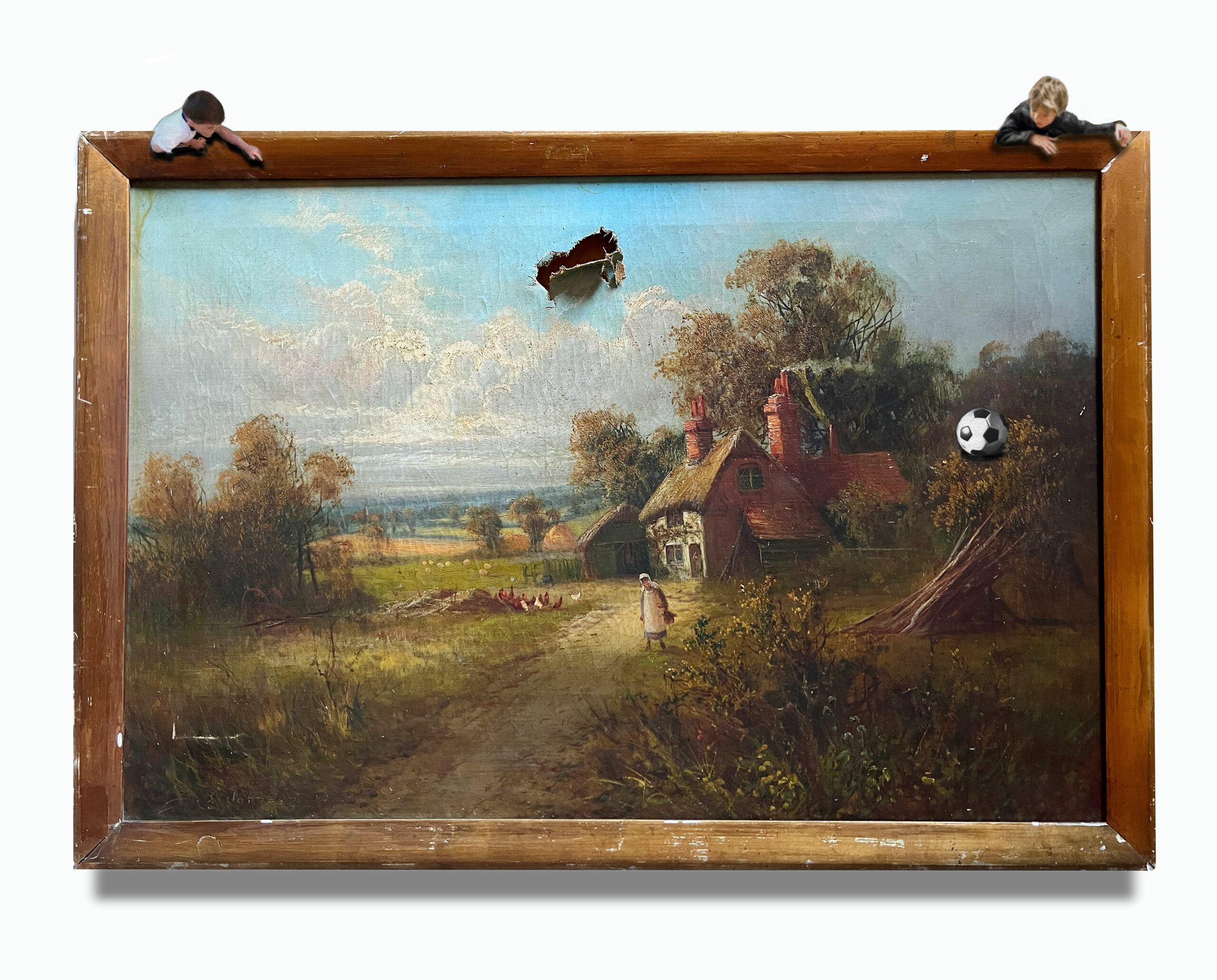 mixed media on wood and framed oil painting