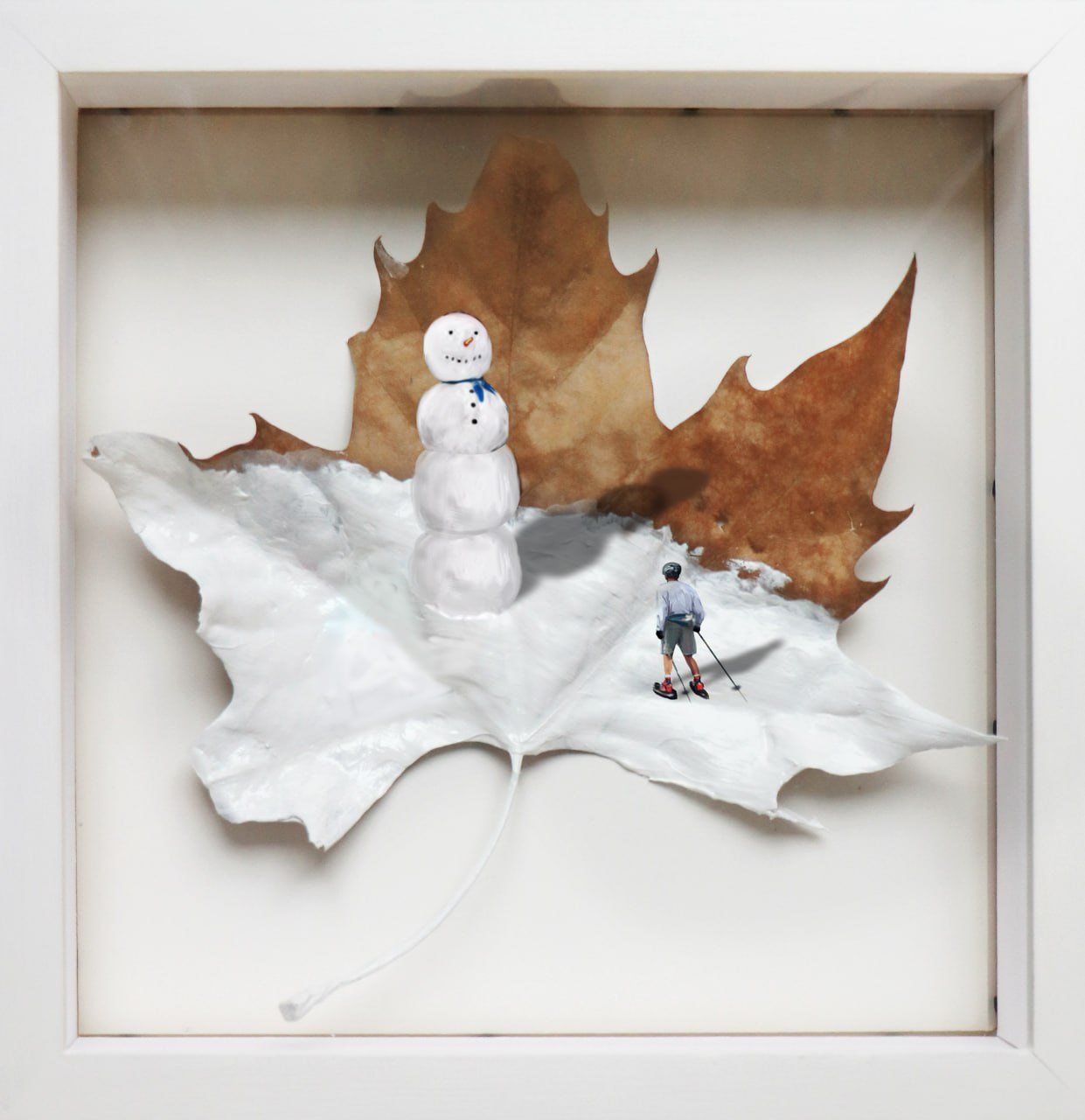 Mixed media on framed leaf with plexiglass cover