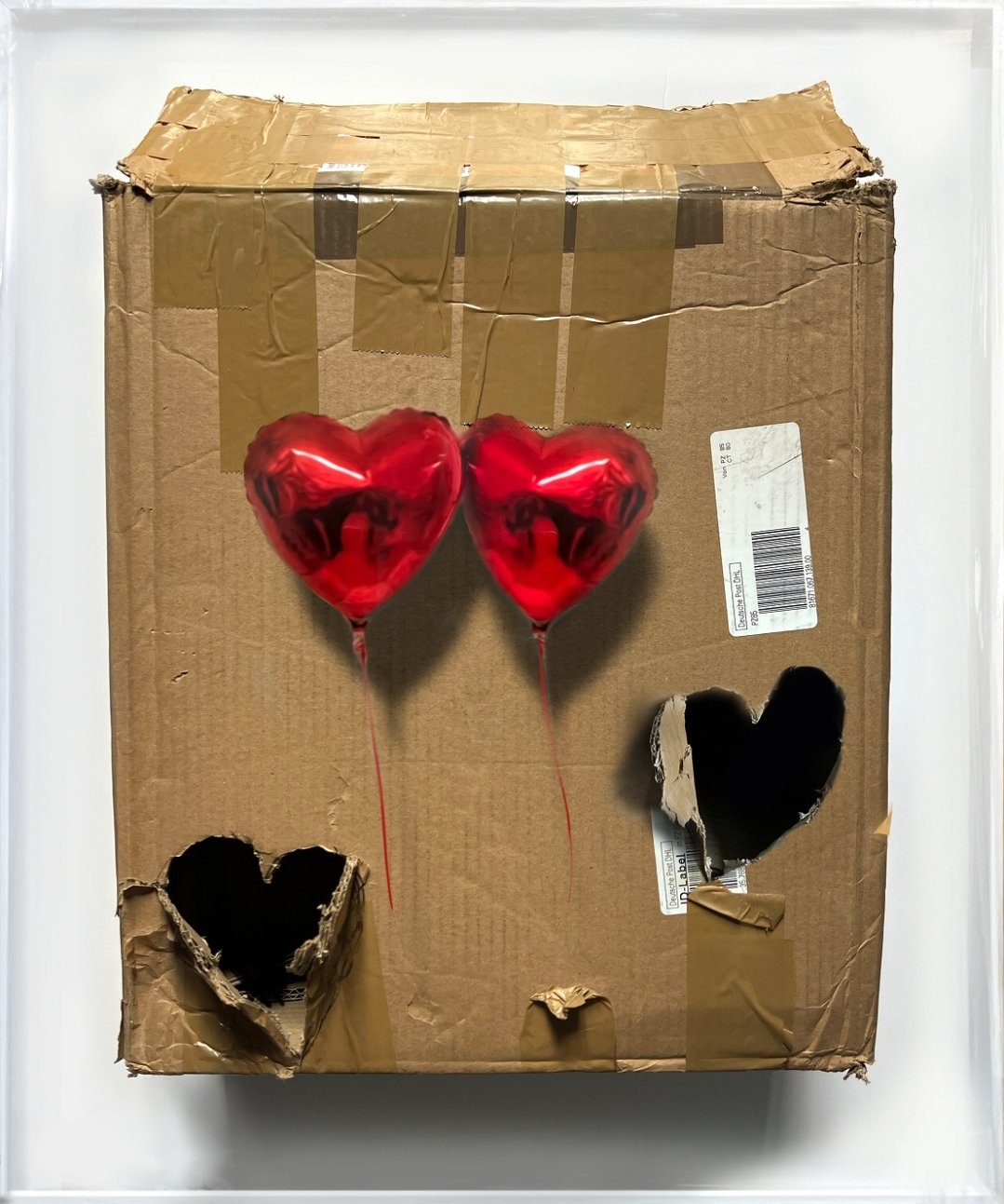 Mixed media on framed cardboard box