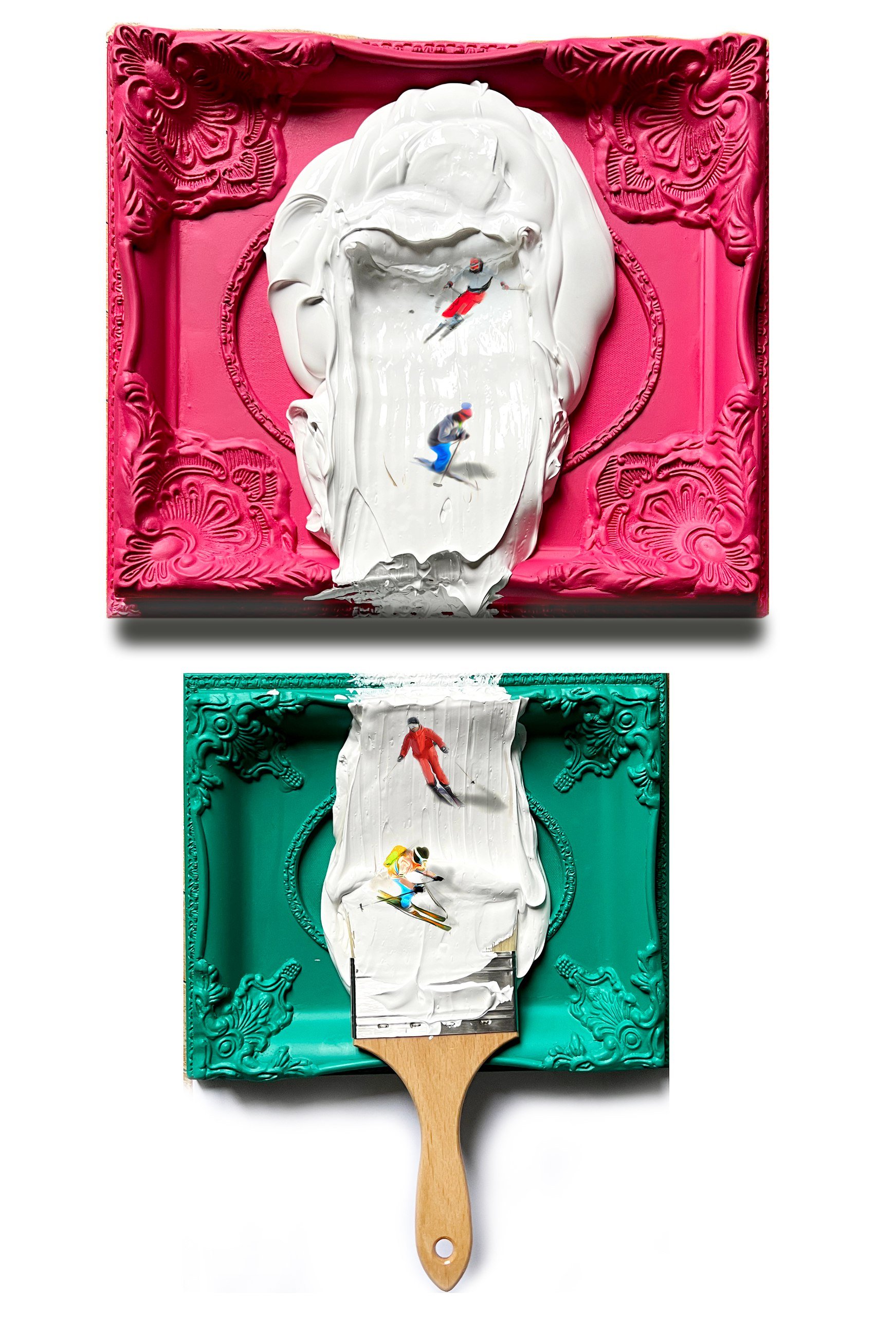 Mixed Media on Framed Canvases and Paint Brush – Diptych