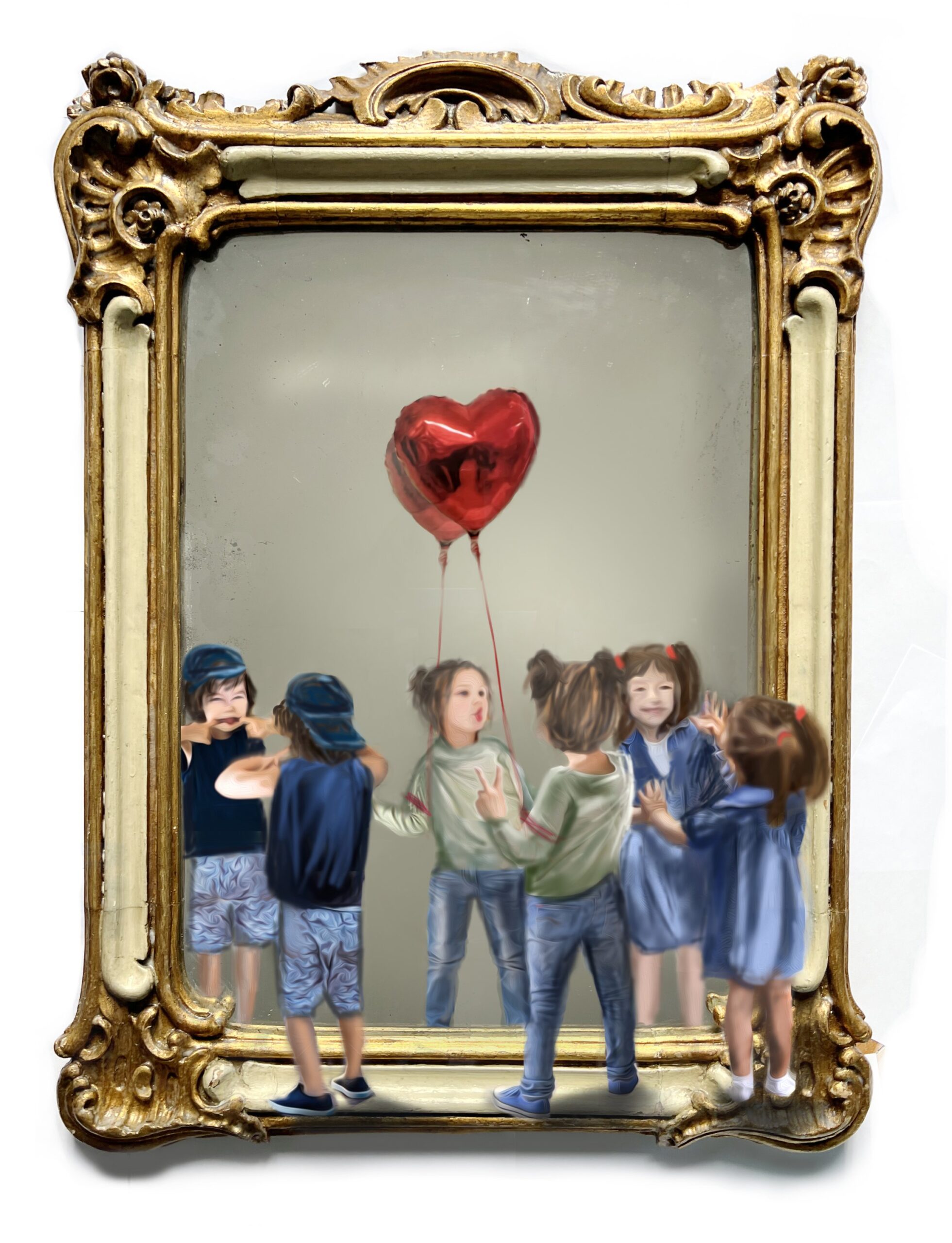 Mixed media on framed vintage italian mirror