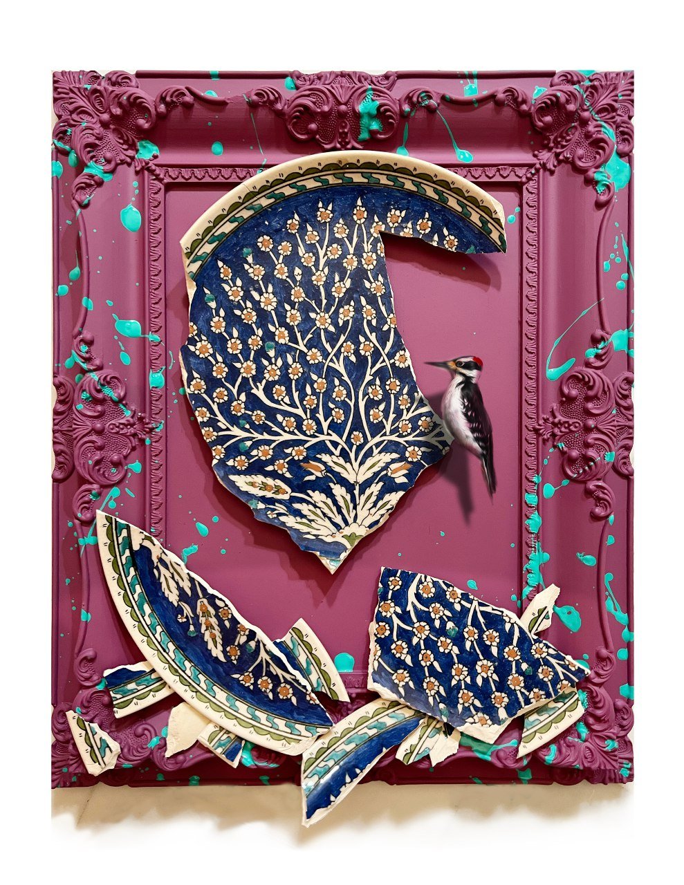 Mixed Media on Framed Ceramic Plate and Canvas