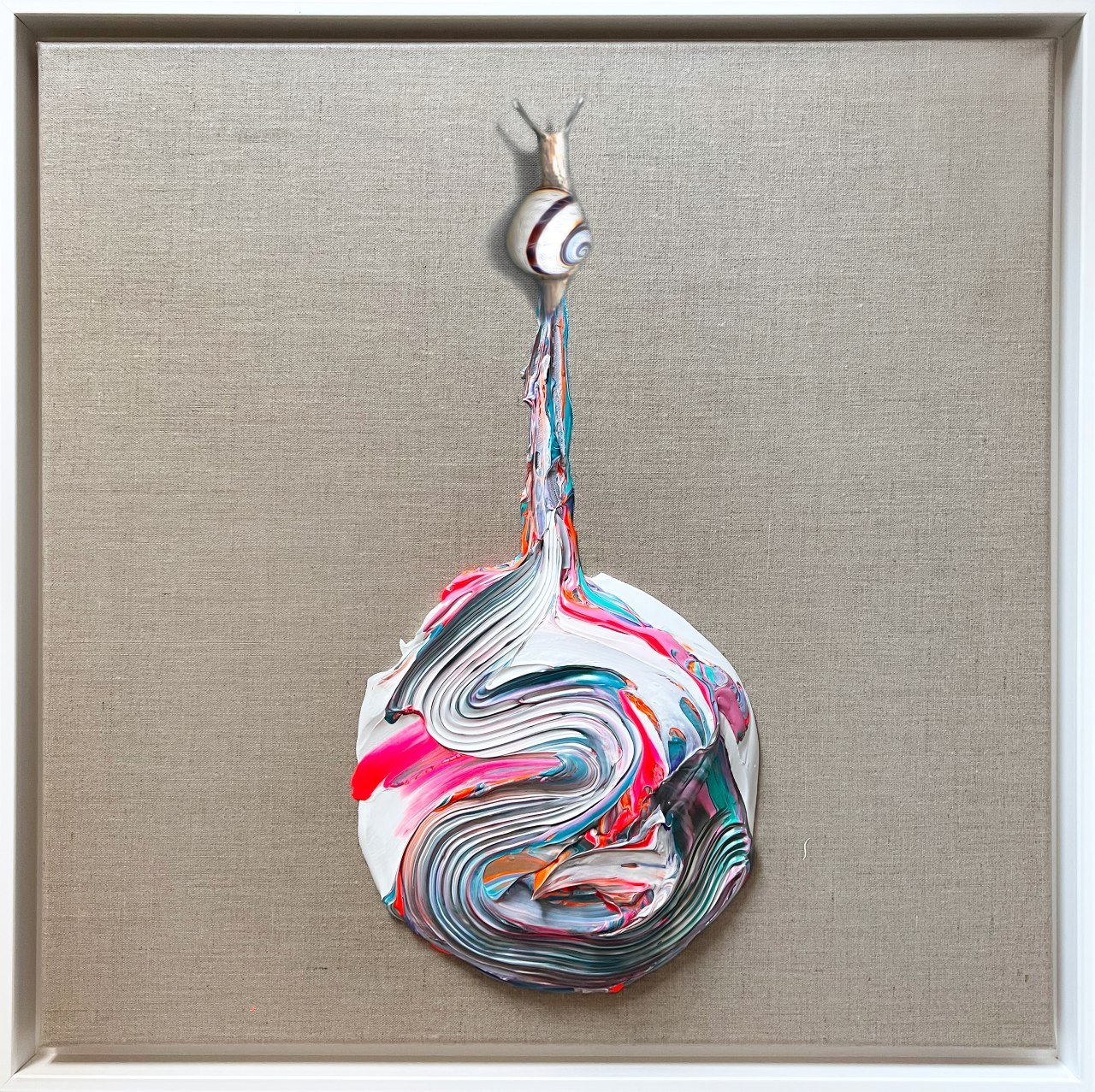 Mixed media on framed linen canvas