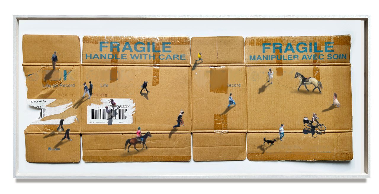 Mixed media on framed cardboard